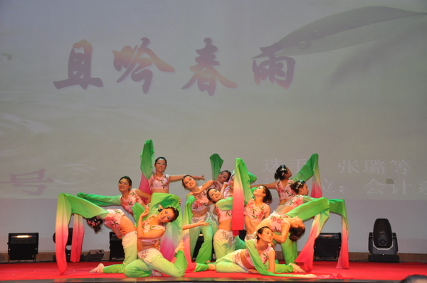 由我系选送的经典民族舞《邵多丽》以婀娜的舞姿、轻柔的音乐把观众带进了一个梦幻般的傣族世界,令现场观众如痴如醉;现代舞《HAPPY ENDING》舞步轻快、简洁奔放,展现了舞者火热的激情;民族舞《且吟春雨》为观众呈现了一款精美绝伦的视觉盛宴,清新的画面、曼妙的舞姿、变幻的舞步将青春的风采展现的淋漓尽致,将现场气氛推向高潮,现场不时爆发出雷鸣般的掌声。此外,由会计系往届校友和现任团学会主席团骨干友情奉献的现代舞《WE COME BACK》作为嘉宾表演为本次大赛增色不少。