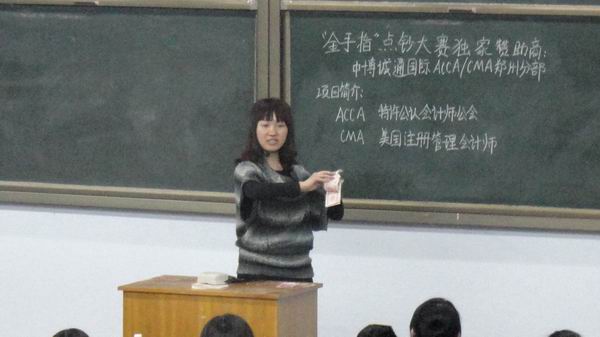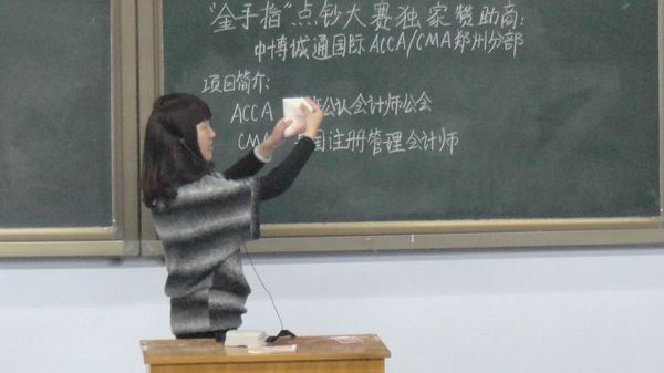 由院团委主办、会计系团委承办的院第一届中博杯“金手指”大赛活动开展以来,得到了全院各系同学的积极关注和热情参与,为了促进“金手指”大赛点钞比赛的顺利进行,保证各系参赛同学公平竞争,3月27日、28日,我系会计协会特邀请中博诚通国际ACCA/CMA郑州分部的专业人员王金瑞老师为报名参加本次点钞大赛的各系同学们在教学一号楼108教室进行了为期两天的培训。