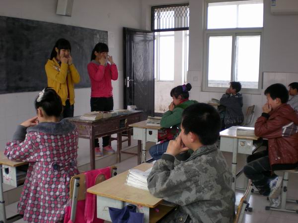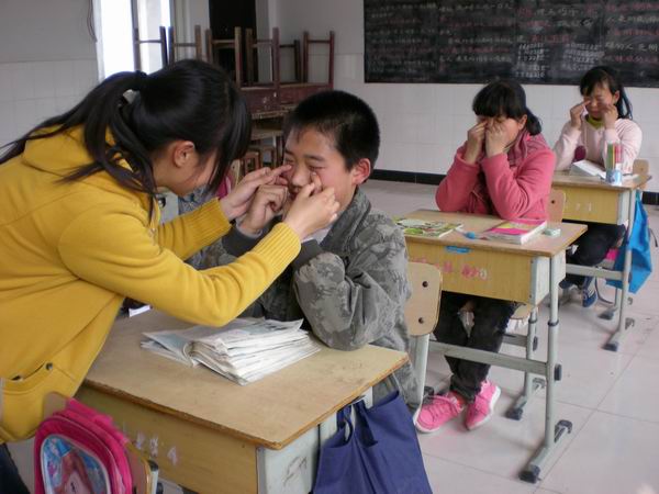 首先,社员们按事先分好的小组轮流去各年级讲解了一些生活小常识,包括如何预防蛀牙、春季传染病的预防措施以及帮助孩子们学习如何保护视力的方法等等。其间还开展了一些脑筋急转弯、猜谜语、讲笑话的活动来活跃课堂气氛。天真无邪的孩子们积极地与我们的社员互动,气氛轻松愉悦,每一个表现积极的小朋友还能赢得由社员们亲手制作的小红花。
