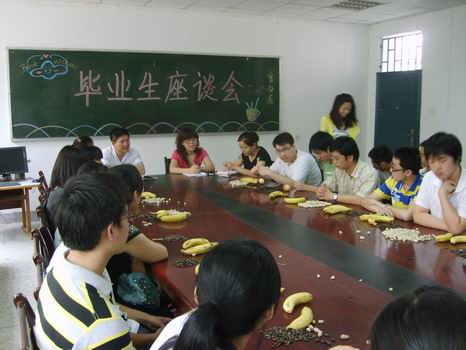 最后,张欣主任和张红阳书记分别发表了讲话。希望毕业生珍惜友谊,在人生的道路上不断前进,祝愿毕业生在踏入社会以后能不断增强自我承受力,通过自己的努力寻找一份满意的工作,实现自己的理想,报答社会。座谈会在一片欢笑和祝福中圆满结束。