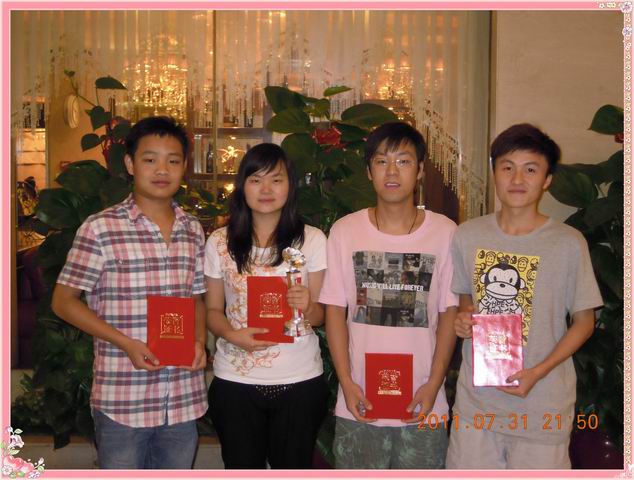 2011年6月10日,他们四人代表我校参加了“金蝶杯”第三届全国大学生创业大赛的河南省赛本科组,荣获了河南省赛区的一等奖。2011年7月29、30、31日,他们四人又作为河南省代表队赶赴长沙,在湖南大学参加了“金蝶杯”第三届全国大学生创业大赛全国总决赛,来自全国各地的91所知名本科院校参加了该项赛事,我院代表队在比赛中充分发挥所学,赛出了水平,赛出了风格,最终喜获银奖!
