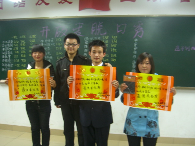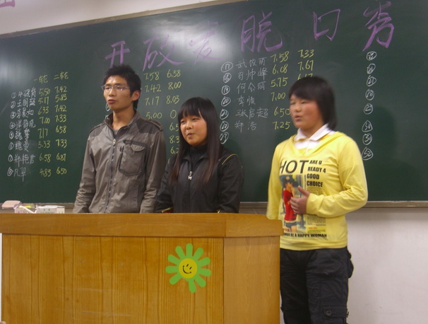 经过精彩激烈的角逐,10财本一班刘雁斌荣获一等奖,10财本二班刘杰、10会本二班郑浩获得二等奖,10会电本班武改丽、10会本二班张启超、10会本一班李顺获得三等奖;10财本二班、10财本一班和10会本一班分别荣获最佳组织奖、最佳表现奖和道德风尚奖。