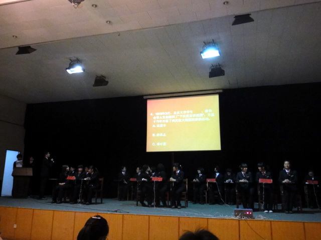 11月29日,由会计系政论部主办的“永远跟党走,争做新一代”党团知识竞赛在龙湖报告厅隆重举行。会计系团委书记郑晶老师、系团委常务副书记焦阳老师、会计系辅导员张晓老师及各系政论部部长出席了比赛,参加比赛的是会计系10级各班代表队。