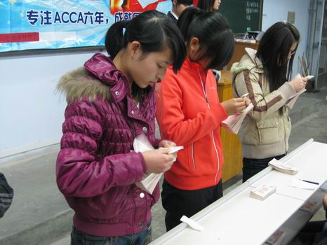 首先,焦阳老师发表讲话,预祝本次比赛圆满成功。接着比赛正式开始,第一个环节点钞风暴,分三轮进行,选手们各就各位后立即开始用熟练的手法迅速的点着自己手中的钞票,脸上充满了自信。第二个环节是互动环节,现场问答抽取多名现场观众点钞,在观众点钞的过程中,对他们进行干扰加大了难度,同时考验了大家的专注程度。经过选手激烈的角逐,最终评出了集体奖:最佳团体奖08会本四班,最佳组织奖10会本二班,道德风尚奖10会本三班,精神文明奖09会本五班。个人奖:一等奖10会本三班章田敏,二等奖10会本三班满源源,10财本一班孔维超,三等奖08会本二班李荣,09涉外一班张本磬,09会本五班李范丽,优秀奖09会本三班陈芳芳,09会本五班王诗语,09会本一班马琳,09财本二班许娜,10会本二班张淑娴,10会电本一班鲁晓慧,09会本三班石伟。