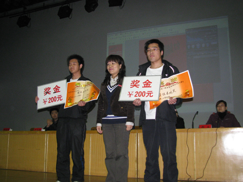 首先郑晶老师为大家介绍了与会的领导、嘉宾,然后宣布了2009-2010学年会计系在国际和全国各项大赛中取得的各项奖项:会计系在第二届“中华会计网校杯”全国财会实务大赛中,精心准备,周密安排,荣获河南省唯一一个集体奖-——最佳组织奖。在我校赛区内,07会电本一班在大赛中获得最佳表现奖,08会本三班获得最佳组织奖。06会本一班康玉婷、07会电本一班刘飞博获得个人一等奖,08会本四班谢红秀、09会升本五班周艳、获得二等奖。08会本四班周彬、06会本一班付涵芳、07电本一班门凤鸳、07会电本一班孙康四位同学获得三等奖。与会的领导和嘉宾为获奖集体和同学颁发了证书和奖品。另外,06会电本二班5名同学和07电本一班5名同学在“用友杯”全国大学生会计信息技能大赛暨第三届ERP技能大赛中获得优秀实践个人奖。在CIMA商业精英国际挑战赛中,会计系凭借扎实的专业知识和精诚合作的团队精神进入了中原地区前8强。
