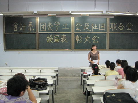 6月22日下午5:30,会计系团委学生会及社团联合会换届表彰大会在教学一号楼108教室隆重举行,出席会议的有会计系党总支副书记张红阳、团委书记兼行政秘书郑晶、团委常务副书记焦阳、党总支委员董健、09级团总支书记徐瑞娜。