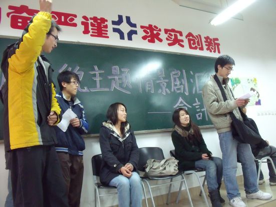 12月10日下午两点半,会计系团校文明礼貌情景剧汇演在商管楼319隆重举行。会计系团委副书记焦雨薇,国贸系团委副书记张薇,资讯系团委副书记吕亚楠,文法系团委副书记罗敏,营销系团委副书记陈世豪共同观看了由会计系团校各班同学的此次表演。