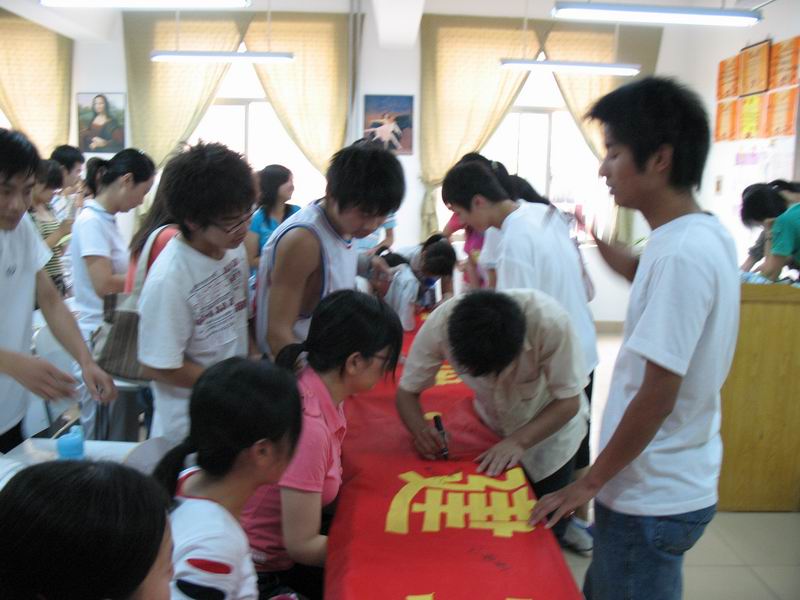 系列活动二:“青春无悔,建功立业正当年”签字活动。大学毕业,人生又崭新的开始,毕业生以今日全面提升,达未来锦绣前程。会计系主任方正生教授、党总支书记朱建良老师、副书记宋维清老师及06级本、专科学生纷纷在印有“青春无悔,建功立业正当年”的条幅上写上对毕业生的殷切希望及深情祝福,希望毕业生在今后的工作中以今日之所学,有所作为。