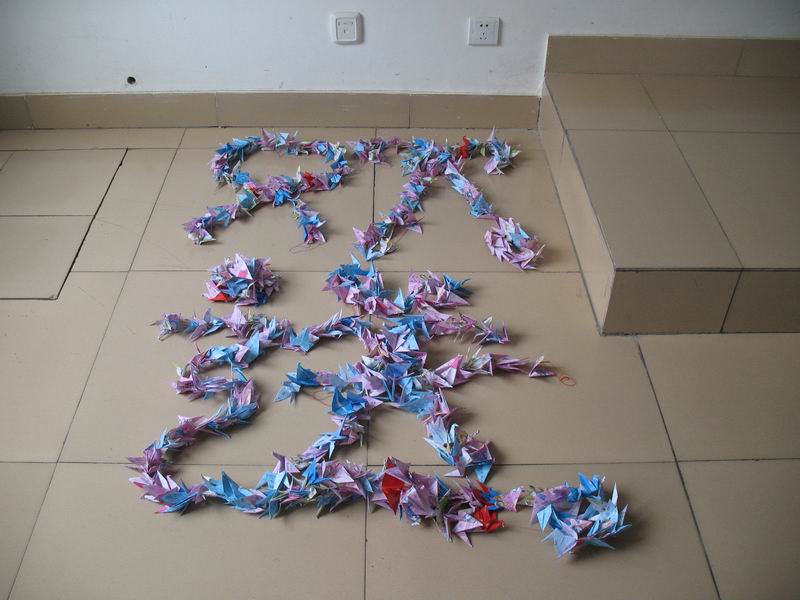 系列活动一:毕业送祝福,纸鹤传真情。06级本、专科学生利用课余时间亲手折叠了1321支充满寄托的千纸鹤。同学们在千纸鹤上书写了对学长学姐的深情祝福,表达了对毕业生的良好祝愿。纸鹤虽小,但是所传递的感情炽烈而真挚。