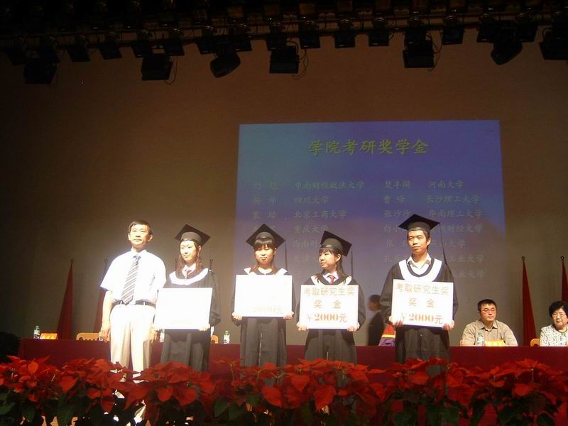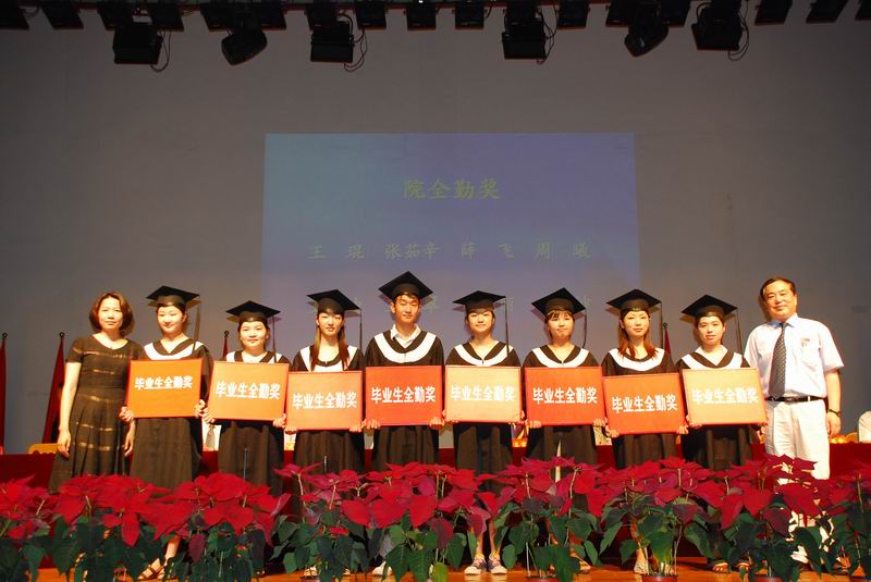本次典礼为毕业生颁发的奖项有:专业第一名奖,全勤奖,校级优秀毕业生奖,省级优秀毕业生奖,考取研究生奖及创办人特别奖。