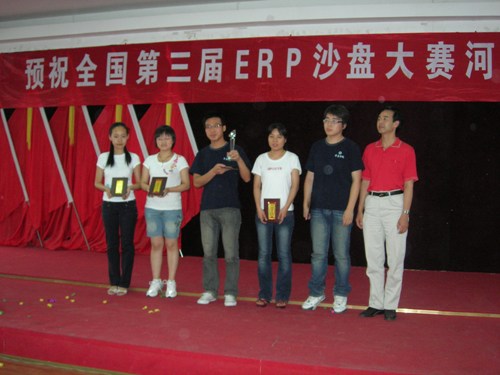 6月16日、17日,中国最有影响的大学生经营管理竞赛——第三届“用友杯”全国大学生ERP沙盘模拟对抗大赛河南赛区总决赛昨日在郑州落幕。ERP沙盘大赛河南省总决赛在中原工学院举行,我院与中原工学院信息商务学院、河南农业大学等30多支代表队经过激烈角逐,取得第三名的好成绩。