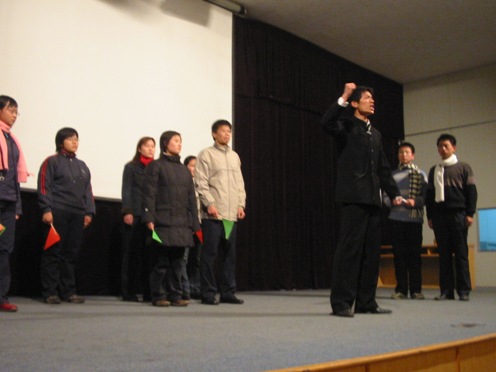 演出在宋维清老师激情澎湃的讲话中拉开帷幕。话剧《血染的青春》,歌颂了青年大学生们捍卫民族和国家利益,视死如归的大无畏精神;《最后的战役》让大家重温了战火纷飞、硝烟弥漫的战争岁月;充满真挚情意的《革命真情》令全场师生激动万分,催人泪下;《历史不容忘记》让大家回忆起那曾经的灾难和屠杀,曾经的黑暗与惨痛。一场场悲壮豪情的话剧,展现了我系学生高昂向上的精神风貌。