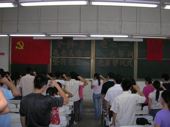 会计系党总支书记戴国立发表了热情洋溢的讲话。他说,在这个特殊时刻,举行入党宣誓仪式,有着重要的特殊意义。对新党员来说是一次很好的党课,对老党员是一次良好的党性教育。新老党员虽然党龄上存在差别,但在理想信念上是一致的。当前,一些老党员存在着思想滑坡甚至退化蜕变现象,参加入党宣誓仪式,有助于我们重温入党誓词,牢记党的先锋队性质和全心全意为人民服务的根本宗旨,对照党员的标准,进一步明确奋斗的目标,激发同志们前进的信心和奋斗的决心,在各自的岗位上更好地发挥先锋模范带头作用。