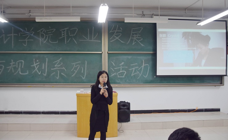 张颖老师以鲁迅先生的四本书《彷徨》、《呐喊》、《伤逝》、《朝花夕拾》形容了绝大多数当代大学生的大学生活,以此引出报告主题,由浅入深的对自己的求学经历和会计师事务所的工作经历进行了分享与阐述,告诉同学们要想赢在大学,职业规划应尽早开始。她给大家分析了会计事务所的现状,鼓励同学们毕业后要努力进入会计事务所工作和学习,并根据自身对就业方向的研究给大家提供了宝贵的建议,分享之后,张颖老师和在座的同学们还进行了答疑解惑、互动交流,同学们积极踊跃地就自身的经历和困惑提出的问题,老师也都一一为其解答,现场气氛活跃。