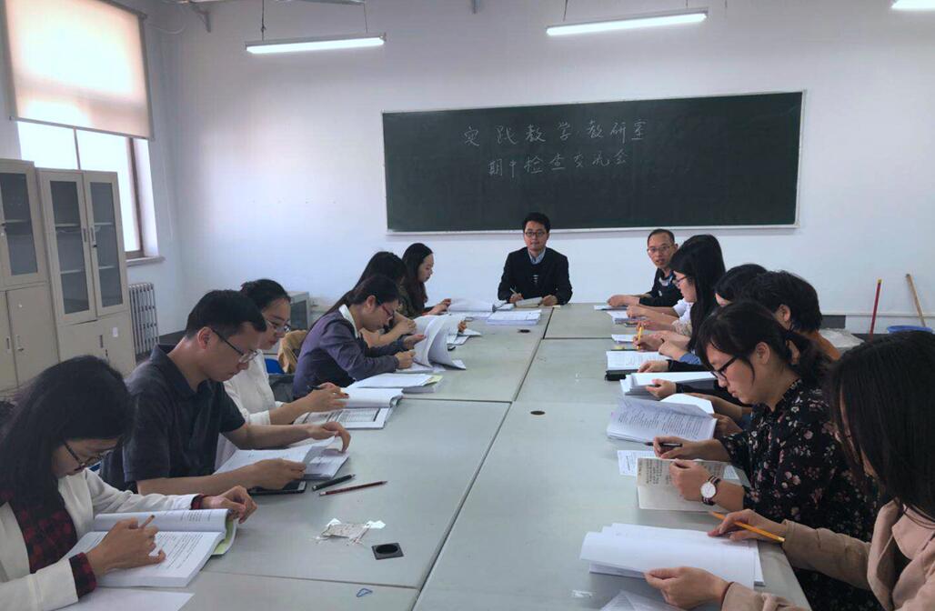 2018年4月19日下午14:00-16:00,实践教学教研室全体成员在综合楼407召开了本学期的期中教学检查工作会议,会议由曾景伟主任主持。期中教学检查主要针对每位专任教本学期的教案和讲稿、听课记录表、PPT、教学反馈表等教学资料进行了互查,且重点查进度表、教案、讲稿和PPT是否与大纲完全一致,通过相互检查教学资料,发现问题,并提出整改的建议。