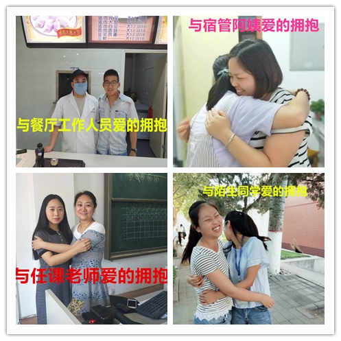 同时,在活动举办期间,我院同学们也热情向校园内的各种人员张开双臂,给出爱的抱抱,有陌生的同学,有宿管阿姨,有任课老师,有餐厅工作人员。同学们期望通过对他们热情的拥抱,表达出对同校之友的尊重,对校园工作人员的感谢,希望让爱的阳光洒满整个校园!