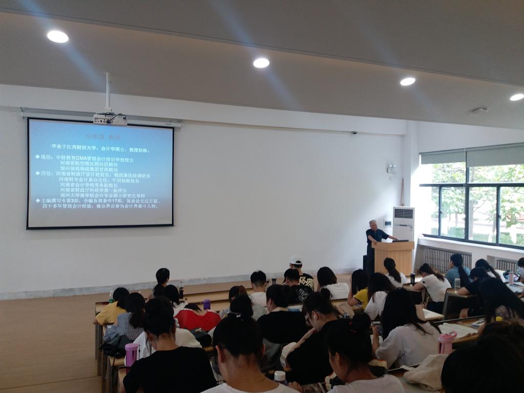 仲夏苦夜短,开轩纳微凉。2018年6月25日下午两点半,在教学四号楼118室,太阳网集团tcy8722近200名学子齐聚一堂,认真倾听了由河南省航空港区首席顾问、郑州保税物流集团首席顾问、郑州大学商学院会计硕士导师侯相恩教授题为《新经济形势下会计实务应用与发展方向》的学术报告,与在校学生分享了当前新经济形势下会计实务应用与发展的最新动态。