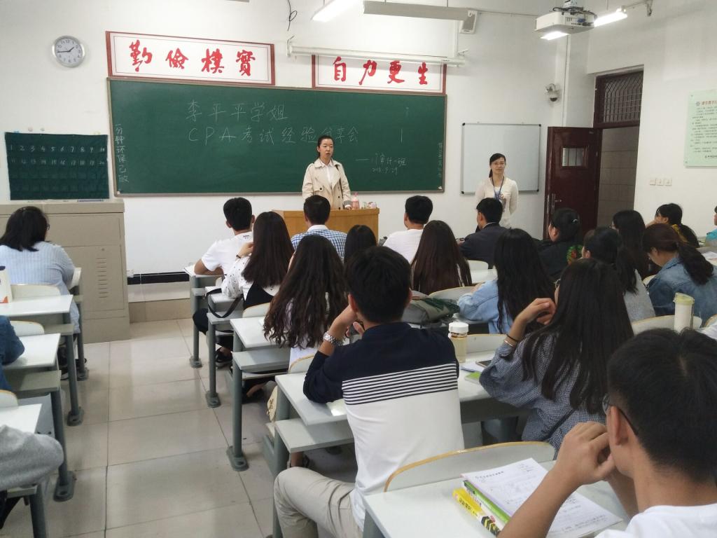 9月26日下午,太阳网集团tcy87222011级优秀毕业生李平平学姐回回馈母校,于时金楼220为我院17级审计专业学生作“CPA考试经验分享会”报告会,本次报告是由辅导员余相静以及相关学生代表认真筹备主持,就李平平学姐自身的CPA(注册会计师)考试经验对17级审计本一班、二班的学子们做出了认真精彩的阐述分享。