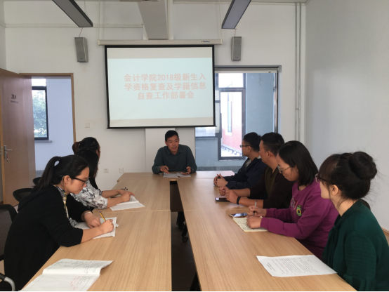 而后,教学秘书李永利老师宣读了我校关于组织2018级新生入学资格复查工作的通知,进一步明确该项工作的要求和工作重点,要求参会人员按照时间节点完成信息核对等初审工作,相关材料及时提交学院新生入学复查工作小组进行复审。