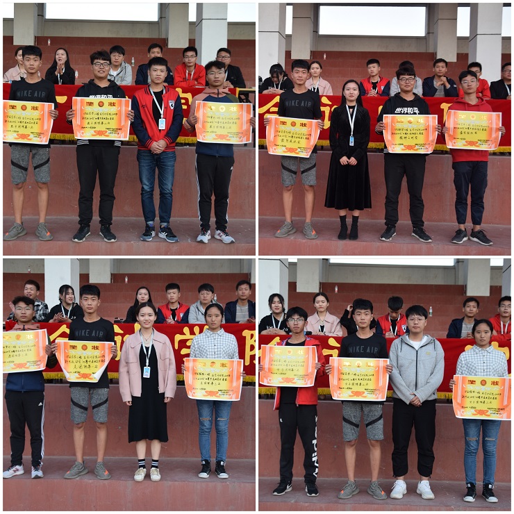 闭幕式上,学生会主席文静做出总结并致闭幕词。会本3班、会本8班、税收1班分别获得女子团队一、二、三等奖,由学生会副主席杨棋凯为其颁奖并合影留念。会本3班、会本2班、审计1班获得男子团体一、二、三等奖,由社团联合会理事长周晨阳为其颁奖并合影留念。会本3班、审计1班获得综合团体奖一、二等奖,税收1班,财本3班并列三等奖,由学生会主席文静为其颁奖并合影留念。18财本1班获得精神文明奖,会本2班获得道德风尚奖,会本3班获得最佳组织奖,会本9班获得最佳通讯奖,由团委副书记徐林林为其颁奖并合影留念。致此,第19届新生运动会完美落幕。