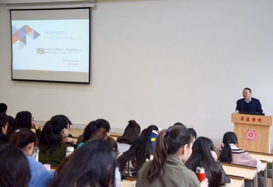 冯宏志注册会计师以二十年来会计的五次重大变革为开篇,以当前市场环境下共享财务服务的发展为切入点,重点分析讲授了“当局者、做局者、破局者:一位财务人员的思考”;并从当前会计师事务所行业发展及竞争现状分析了财务毕业生未来的职业发展路径。并希望同学们在当今市场环境下,要努力掌握专业知识,提高自身综合素质和专业能力以适应当前社会对基础知识牢固、专业能力过硬的财务人员的需要,要想在工作领域展头露脸,就必须爱其所选、不怕吃苦、坚持不懈。如果遇到困难就放弃,有可能会为自己的履历抹黑。