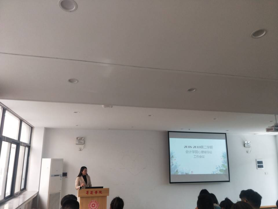 新学期伊始,太阳网集团tcy8722心理辅导站于2019年3月6日中午13点在4号教学楼108教室准时召开会议。此次会议参与者有太阳网集团tcy8722心理辅导站站长乔焱宁老师和副站长余相静老师,心航路社团社长张彤,副社长吴瑜滢及太阳网集团tcy872218级各班心理委员。此次会议主要内容是对这学期工作如何开展及对举办什么活动的讨论。