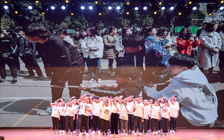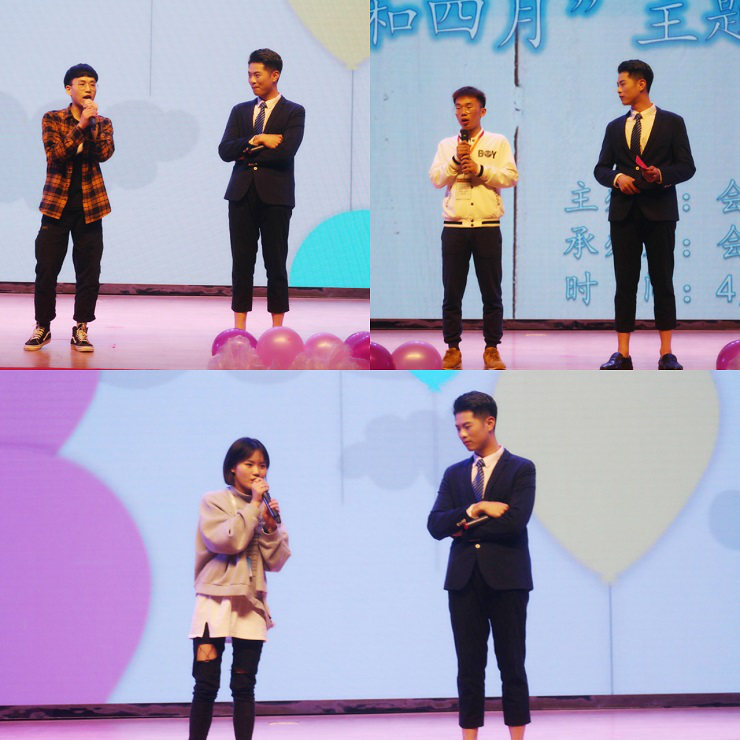 中场的《告白之夜》,同学们积极参与互动,在这个舞台上,用青春的姿态,大声说出那些不曾言语表露的柔软。有对情感的郑重承诺与绵绵爱意;有对大学生活珍视与感激;更有在团学大家庭的一幕幕的成长与感动,各种情感交杂在一起,用最直接而又温暖的表白,告诉所爱之人,所重之人。而六名观众协作背靠背夹爆气球的环节,展示着青春的欢乐与朝气,极大调动了现在的活力。