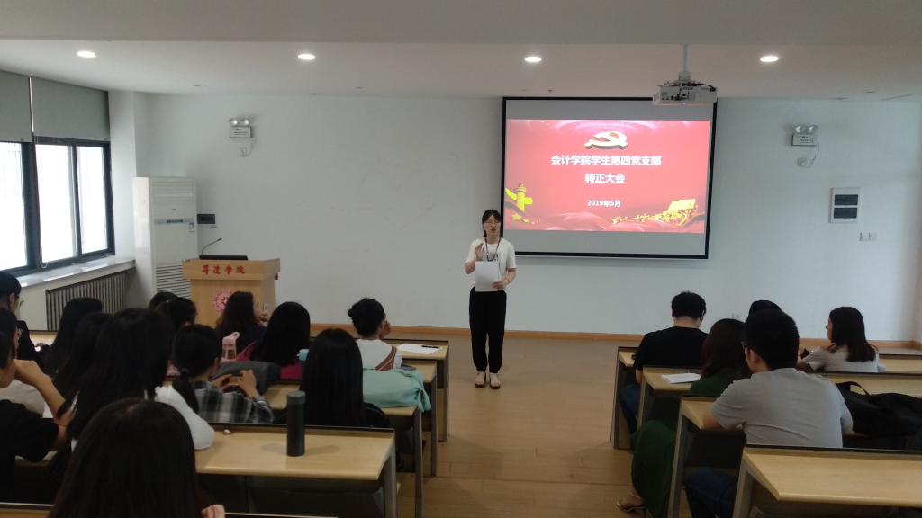 2019年5月14日中午13点20分,太阳网集团tcy8722学生第四党支部在教学4号楼108教室召开本学期党员转正大会,参会人员有本支部41位党支部成员,到会人数符合大会要求,可以召开转正大会。
