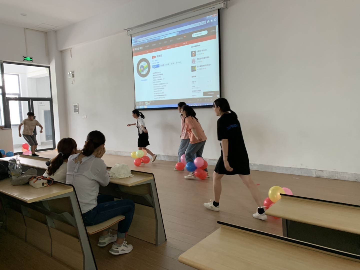 18级会本三班心理委员冯瑛昕同学组织了游戏—踩气球活动,各班同学积极参加,会场气氛十分活跃。18级会本九班赵镜镜同学带来一段舞蹈,将会场气氛推上了高潮。