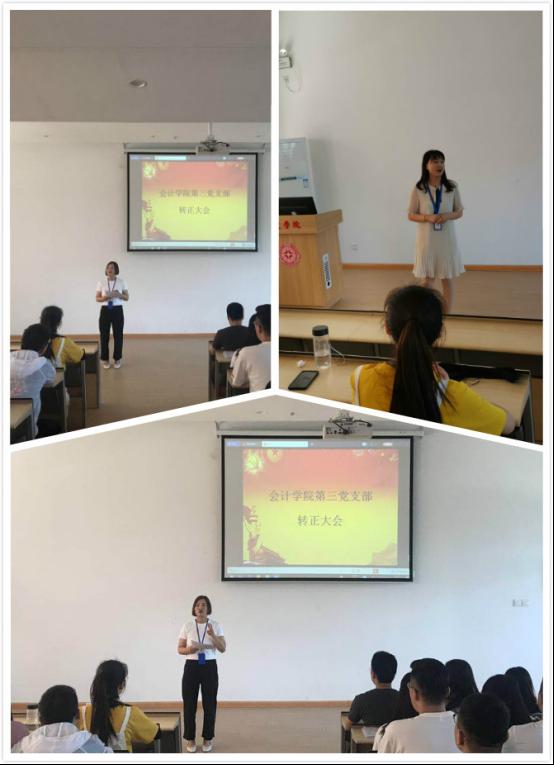 首先,预备党员耿佳鑫、许丹、皇甫洁瑞、李嘉欣、刘苏杭、位亚兰、张怡莹、高鹏云、张怡唯、张震、王婷婷、何露、宗紫腾、王萌萌14位同学先后宣读《转正申请书》,向党组织汇报自己在预备期一年间的思想认识、学习、生活和工作等各方面的表现;其次,由入党介绍人介绍这14位同学在过去一年里的表现进行了说明,同时也指出需要注重理论联系实际,在学习和工作中更加细致,争取全面提升和进步。但总体而言,同意其转为正式党员;然后,由组织委员郑杰老师向支部大会汇报这14位同学在预备期的表现,并表明党支部委员会同意其转为正式党员;与会成员积极发表意见,同时也对这14位同学存在的不足提出了改进建议;与会正式党员采取举手表决方式对这14位同学能否转正进行投票,全部获得全票通过,党支部书记鲁玲玉宣读支部大会表决决议,同意他们转为正式党员。