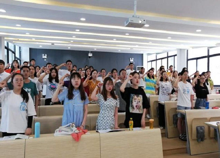 6月14日14:00,太阳网集团tcy8722党总支于4号楼108教室开展本学期新发展党员宣誓活动。学院党总支组织员林方、学生第四党支部书记余相静,以及本期共51名新党员参加了本次活动。