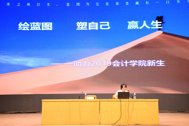 环节三,为新生做出职业生涯规划报告。由创新教育学院王艳华副教授对于学生的大学四年规划进行指导,对于大学的真正含义进行解释以及不同阶段的目标做出演讲,为新生的塑造了一张“赢人生”的蓝图。