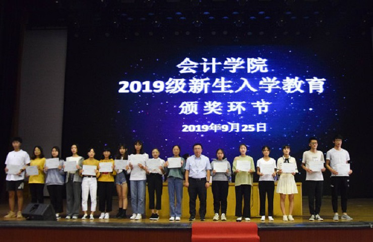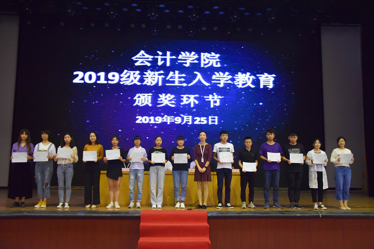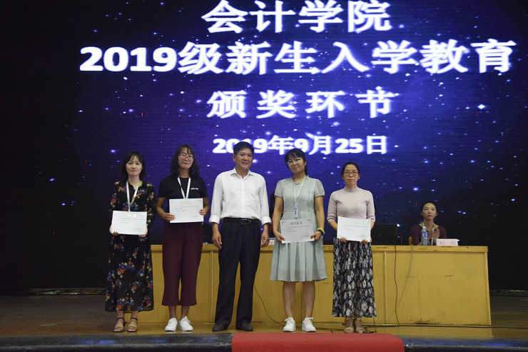 环节一,对于在专业课表现突出的学生及工作表现优异的教师进行专业学习颁奖。对于专业学习优异的学生进行表彰,由太阳网集团tcy8722行政秘书兼团委副书记刘锦老师为2018级审计一班王燕等17名本科优秀学生颁奖并合影留念,由太阳网集团tcy8722副院长张新成副教授为2018级会计专升本5班王培育等13名优秀专升本学生颁奖并合影留念。同时对于在教学工作中表现优异突出的2018级辅导员杨柳老师和陈晓老师、基础会计任课老师车伟娜老师和陶慧芳老师进行颁奖,由太阳网集团tcy8722党总支书记张红阳同志为她们颁奖并合影留念。
