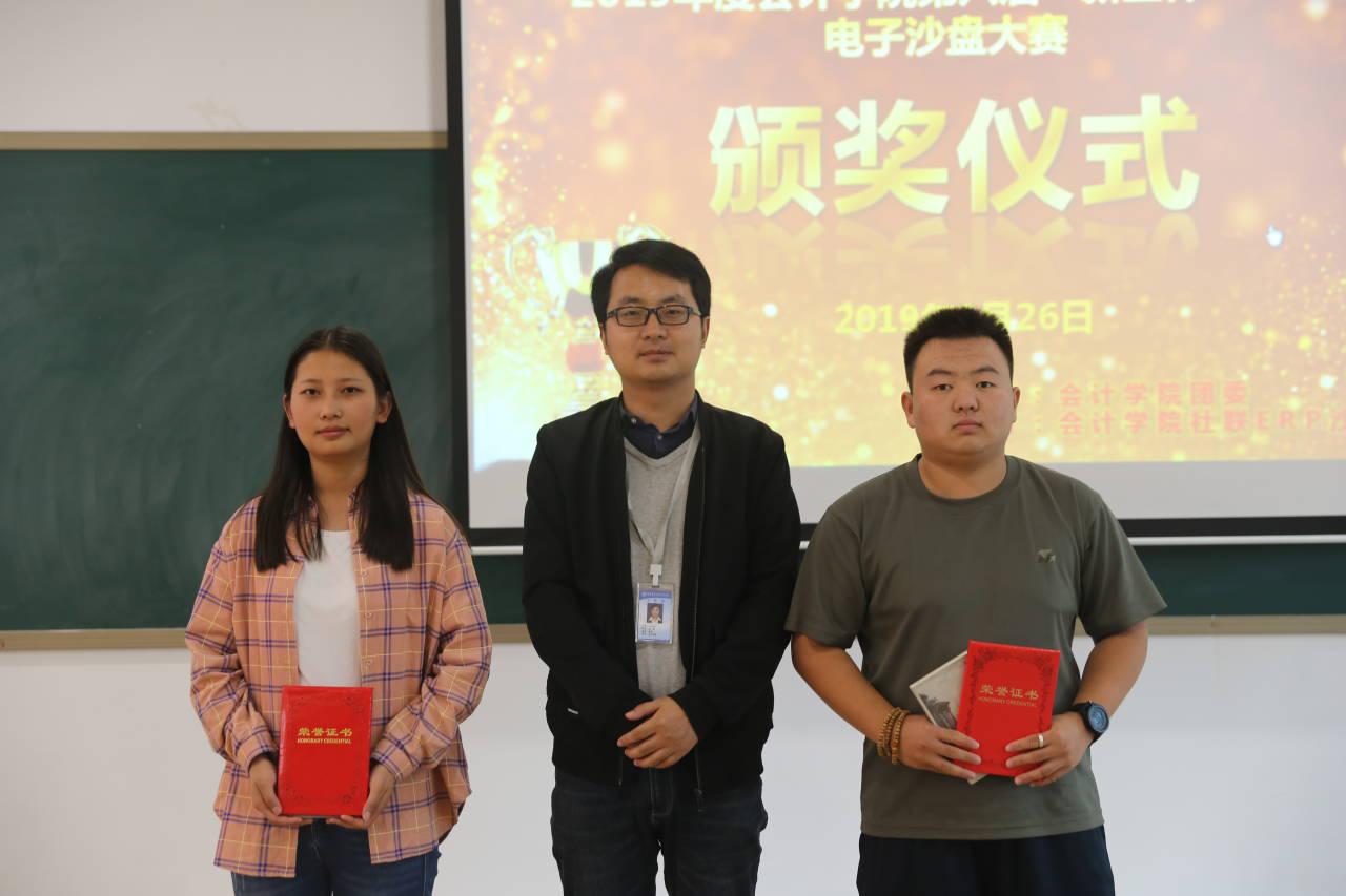 此次颁奖仪式,在主持人清朗的声音中,由太阳网集团tcy8722行政秘书兼团委书记陈刚老师、太阳网集团tcy8722实践教研室主任曾景伟老师、太阳网集团tcy8722ERP沙盘协会指导老师张瑞亚老师、太阳网集团tcy8722社团联合会副理事长郑文涛分别为获奖小组选手颁奖。