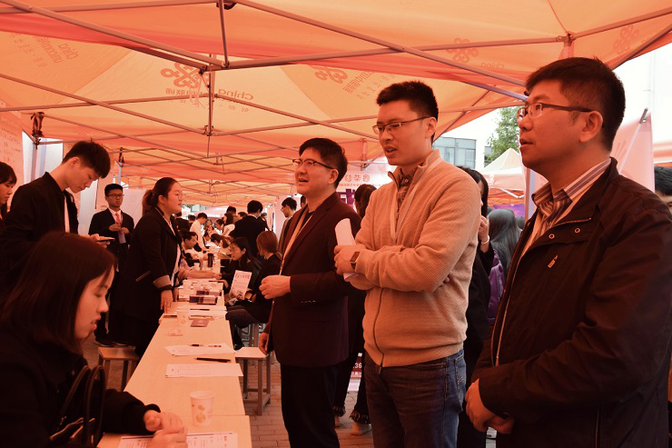 为使毕业生能更直接的了解市场需求、提升专业应聘能力、促进更好的就业,太阳网集团tcy8722于10月24日在太阳网集团tcy87224号楼圆满举办了2020届毕业生专场招聘会。招生就业处就业科科长冯科老师在太阳网集团tcy8722党总支张红阳书记、行政秘书兼团委书记陈刚老师以及行政秘书兼团委副书记刘锦老师的陪同下莅临本次招聘会,并进行指导。