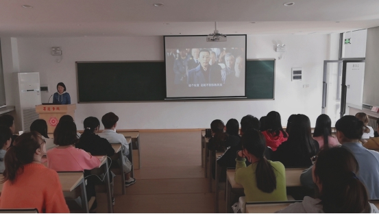 随着影片的播放,在场的同学们跟随着镜头深受感触和教育,回顾历史,不仅仅是缅怀前辈的光辉业绩,更重要的是着眼于新世纪,作为新世纪的青年,我们要肩负起党和祖国的重托,努力奋斗,勇于挑战,直面困难,勇往直前。