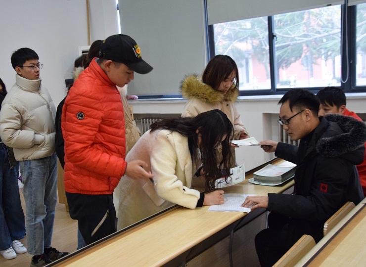 在发放证书的过程中,同学们携带身份证,自觉有序地排队领取。现场特设两个发放点,每个发放点都有工作人员耐心地为同学们指导。同时工作人员细心地为同学讲解后续注意事项,让同学们对初级会计证书的相关知识更加清晰明了。活动进行得如火如荼,同学们手捧证书满心欢喜,陈刚老师由衷地对大家表示祝贺。