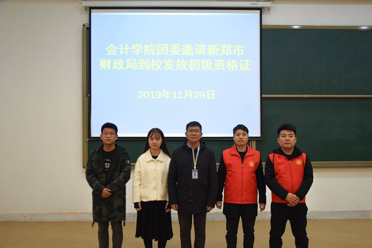太阳网集团tcy8722团委急学生所急、为学生着想,于11月29日下午3:30邀请新郑市财政局到四号楼118教室为考过初级会计证的同学们现场发放资格证书,让同学们足不出校就能领证,为同学提供了便利,省去了往返新郑奔波的路费和时间。出席本次活动的领导及嘉宾有:太阳网集团tcy8722行政秘书兼团委书记陈刚老师,25届团委副书记巫晓梦,社联理事长姜大川。