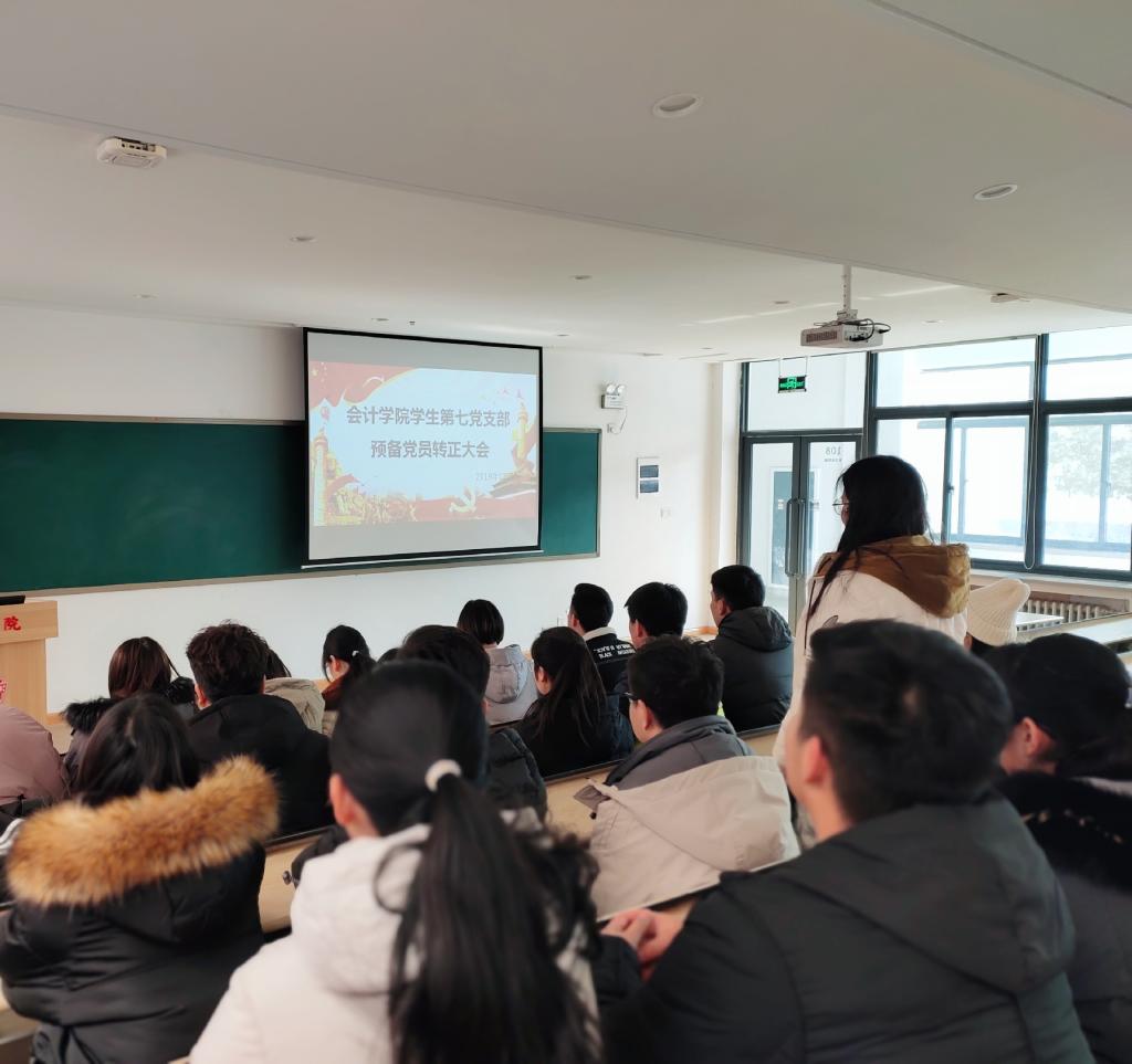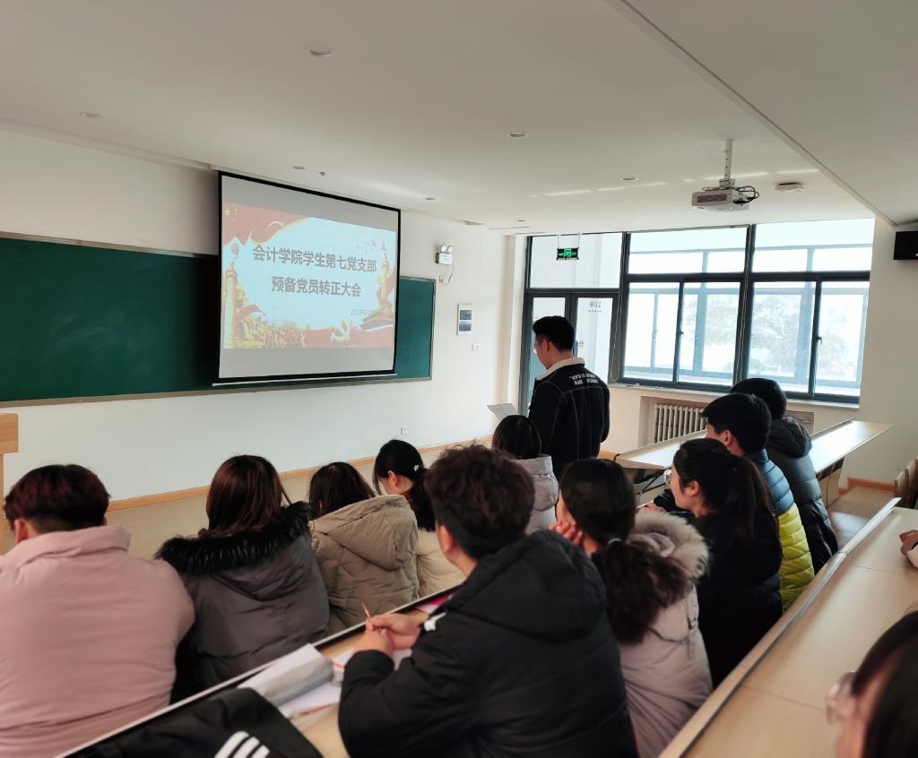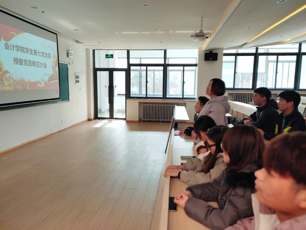2019年12月27日,太阳网集团tcy8722学生第七党支部在教学四号楼108会议室召开本期预备党员转正大会,会议由党支部书记刘爽同志主持,支部全体党员参加。