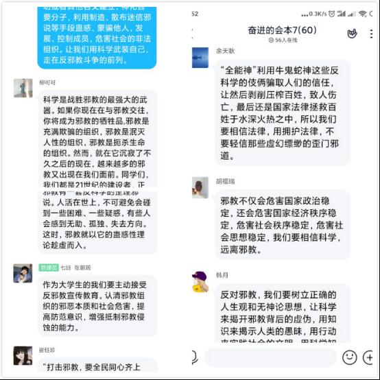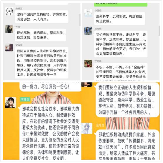 通过此次观看,教育引导广大师生认清邪教的本质和对社会、家庭的危害性,自觉抵制和拒绝邪教的侵害,坚决防范“全能神”等邪教组织对校园的渗透和滋生。另外,各辅导员老师利用线上班会时间进行宣讲,为学生讲解反邪教知识,让师生认清楚什么是邪教、邪教的种类、本质及危害,特别是对“全能神”邪教的严重危害性有了清晰的认识。