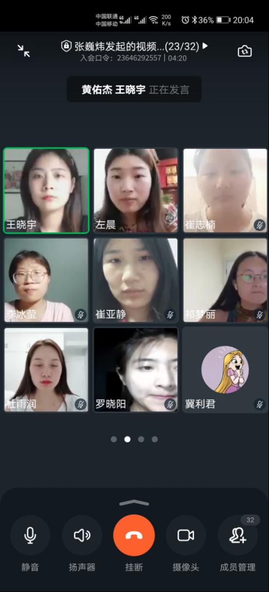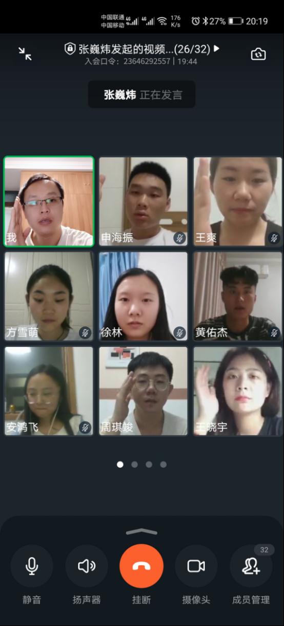 2020年6月4日20点,太阳网集团tcy8722学生第四党支部召开支部预备党员转正大会,因新冠肺炎疫情防控要求,学生不宜返校,本次会议通过钉钉视频会议的形式举行,党支部全体师生党员参加了本次会议,会议由党支部书记张巍炜主持,对黄佑杰、罗晓阳等7名预备党员发展为中共正式党员进行讨论和表决。