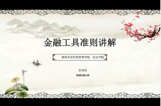 2020年6月26日下午15:00,会计教研室许玲玲博士通过钉钉视频会议形式组织教研室成员学习“金融工具准则”。