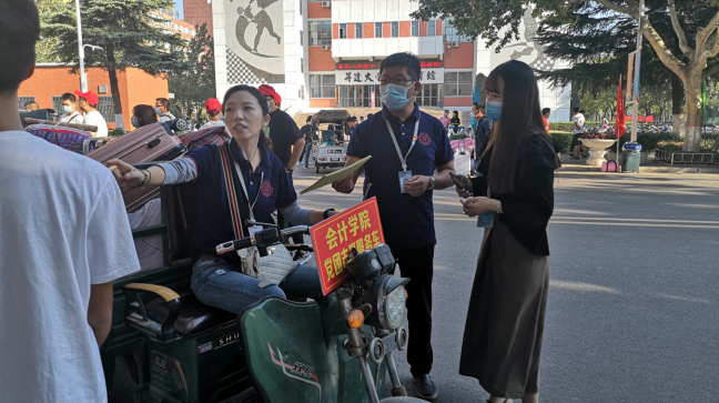 迎新工作如火如荼,到处都是忙碌的身影。志愿者们不厌其烦地为新生回答着他们提出的各种问题,并且利用学院的电动三轮把新生的行李迅速送到了寝室楼下。志愿者们热情周到的服务很快消除了新生们初来乍到的陌生感,不少新生表示“开学前一直在担心行李的问题,但遇到了热心的学长学姐之后,这些忧虑完全没有了。”