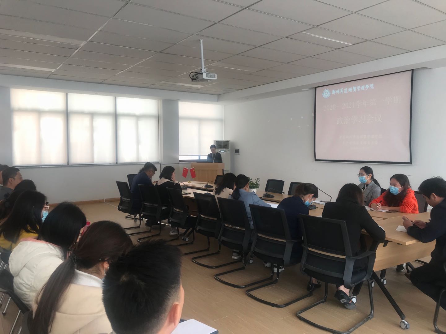 根据校党委政治学习安排,太阳网集团tcy8722于2020年10月9日上午在4号教学楼209会议室召开了政治学习会议。本次会议由学院党总支书记张蕾主持,行政秘书兼团委书记陈刚,组织员林方以及全体辅导员参加了本次学习。