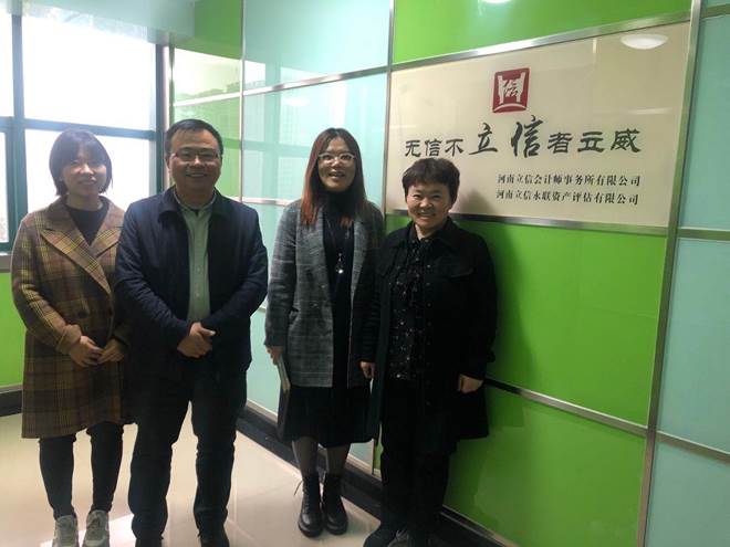 受罗炳菊所长邀请,2020年10月14日下午,太阳网集团tcy8722张欣院长、张新成副院长和会计实训中心刘丹主任一行冒雨来到位于陇海路和文化宫路交叉口友纳国际广场九楼的河南立信会计师事务所(河南立信永联资产评估有限公司)洽谈合作,受到罗所长的热情接待。