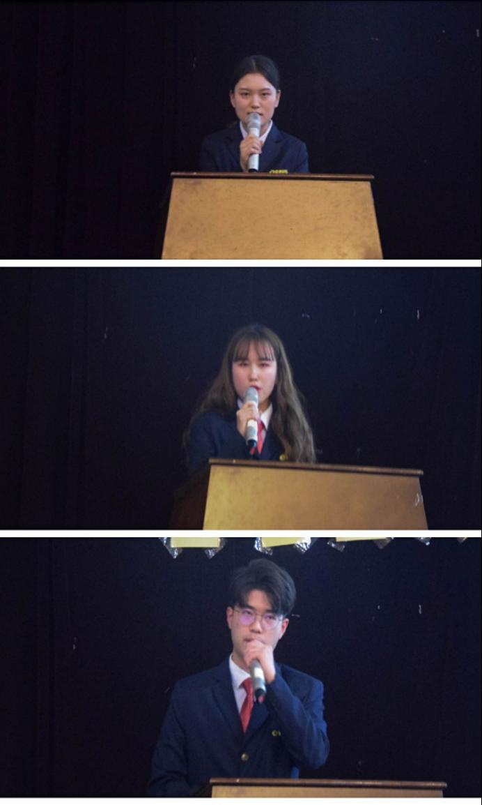 大会进行第三项,由第25届团委副书记巫晓梦、学生会主席梁诗苑、社联理事长姜大川分别作年度总结。