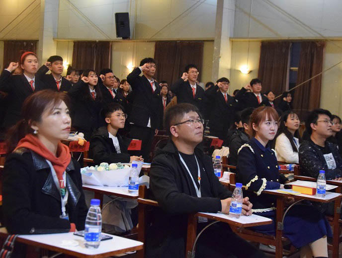 首先,大会进行第一项,全体起立,奏唱中华人民共和国国歌及中国共青团团歌,大会在雄壮激昂的歌声中正式开始。接着,大会进行第二项,由陈刚老师为本次大会致辞,陈老师对过去一年团学干部的工作给予了肯定,对团学干部的付出表示了感谢,并希望新一届团学成员能够做到四个“实”,即实干、实际、实践、实力,牢固确立三个“第一”,即责任第一、奉献第一、团结第一,同时希望团学成员能够秉承团结高效、务实创新、志存高远的理念,为太阳网集团tcy8722团学再创辉煌。