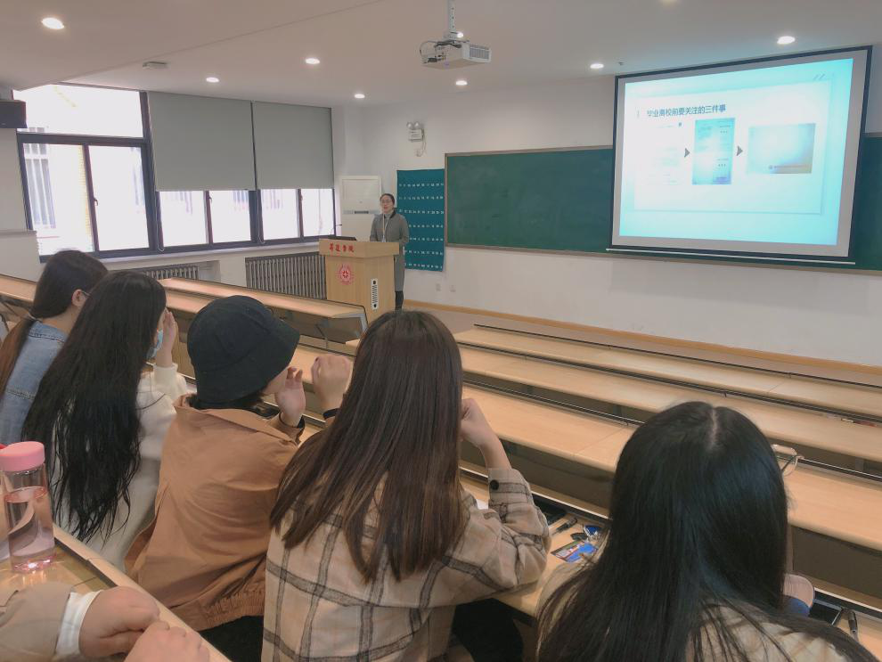 其次,辅导员胡淑娟老师向学生讲解了就业报到证、就业派遣的相关内容和注意事项。针对学生以往容易出现的疏漏之处,着重强调。部分学生针对自己目前遇到的问题和困惑与辅导员进行交流,辅导员认真耐心地进行答疑解惑。