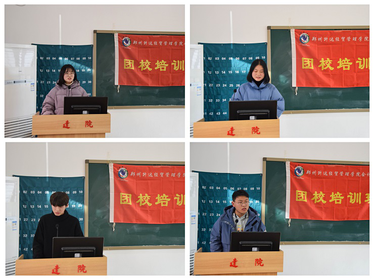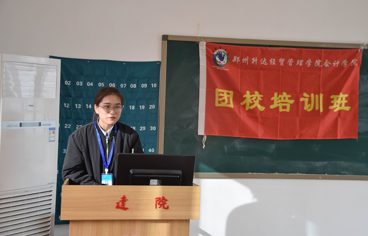 此次活动共分为三个环节。首先进行第一个环节,由团校班班主任李荣波、王悦悦发表讲话。李荣波指出,团校班旨在使各位学员深刻了解共青团的历史,掌握更多的共青团相关知识,在学习生活中充分发挥模范先锋作用。然后王悦悦对本学期团校班所开展的课程进行总结,提出团校班学员要在加强理论学习的同时提高实践能力,并对下学期的团校班课程提出要求。