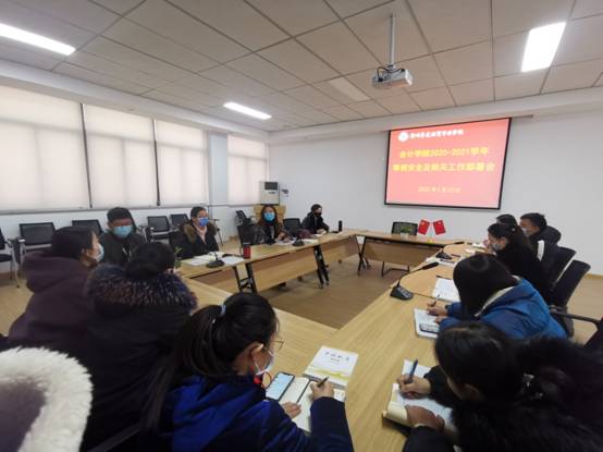 最后,张蕾书记就各项工作成绩、假期疫情防控、期末考核等具体工作进行了安排,并从以下几点进行了总结:一、凝心聚力促提升。本学期学院工作取得了良好成绩,各项竞赛成绩优异,多名师生获得校、市及以上奖项,学生学业成绩、考研、考证方面均创新高,各项工作圆满完成,感谢全体教职工的辛勤付出;二、疫情防控严落实。寒假期间疫情防控工作不能放松,要严格落实学校各项要求,做到不私自返校、非必要不流动,及时上报个人异动。做好师生每日健康状况上报工作,及时掌握学生状况,确保安全稳定局面;三、各项工作不放松。全体人员保持通讯畅通,留存好工作资料,如遇紧急任务及时响应,保证各项工作扎扎实实、不掉链子;四、再接再厉创佳绩。要珍惜良好工作局面,全院上下一心、齐心协力,再创佳绩。最后,预祝